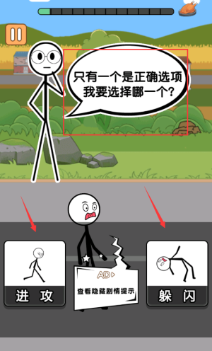 3、遇到敌人进攻,你需要选择一个选项应对。