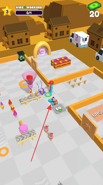 1、进入游戏,先在初始界面选定经营区域,点击空白摊位,摆放基础制冰设备,开启冰淇淋制作与售卖的第一步。