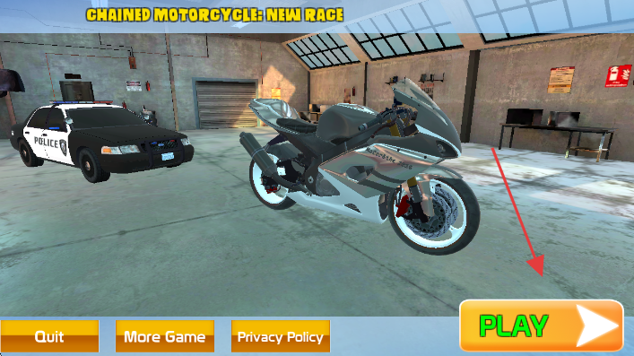 1、点击界面右下角绿色【PLAY】按钮,开启【CHAINED MOTORCYCLE NEW RACE】摩托车竞速挑战。
