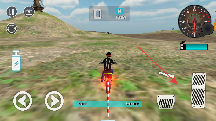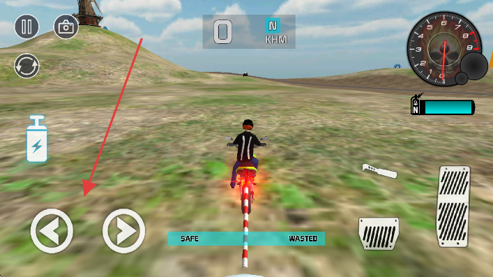 2、驾驶中,利用左侧箭头按钮操控摩托转向,在野外地形灵活行驶。
