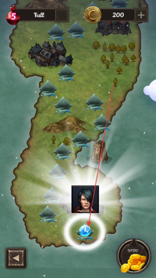 1、点击游戏标题界面的宝石区域,进入地图场景,选择带数字“1”的关卡,开启宝石消除挑战 。