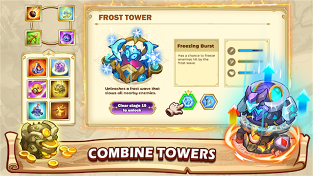 3、丰富的防御体系,10+种特色防御塔各具功能,箭塔擅长速攻,法师塔范围杀伤,特殊防御塔需要完成成就获取。
