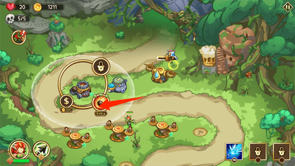 2、选择锤子图标,建立坚固的防御塔。