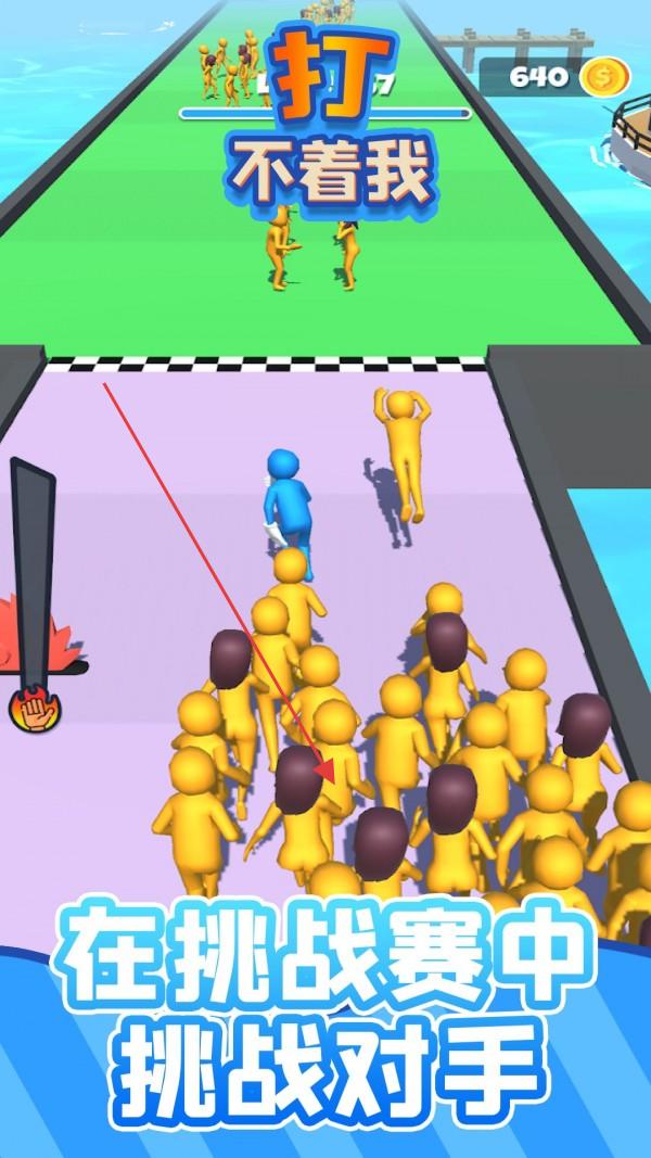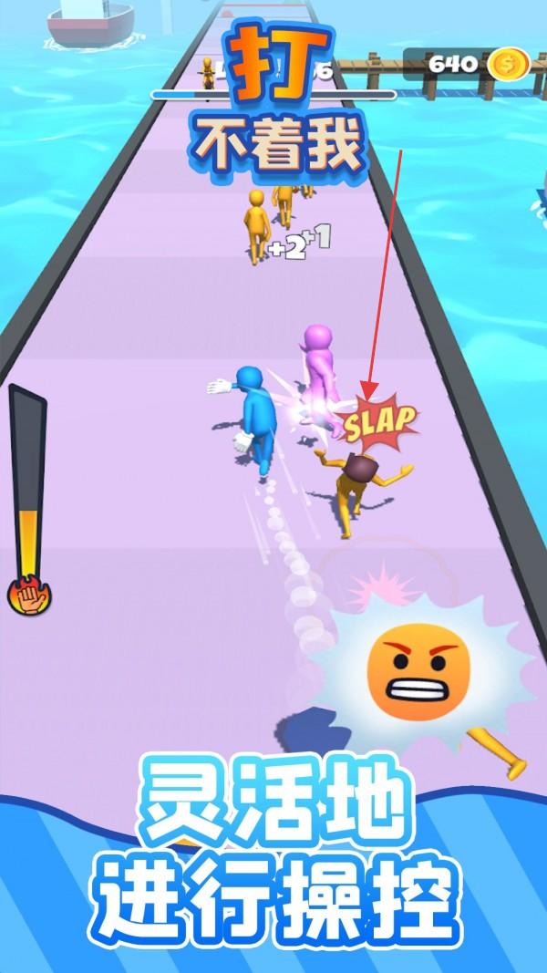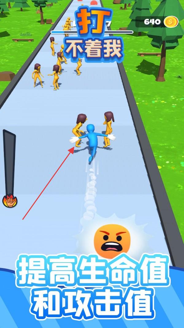 打不着我是一款爆笑十足的休闲跑酷佳作,玩家化身为蓝骑士在色彩鲜明的赛道上狂奔,沿途会遭遇大批黄色小人的拦截阻挡,需一边向前冲刺,一边通过滑动屏幕操作蓝骑士攻击或躲避小黄人,同时拾取加速鞋、护盾等道具提升战力,还能抢夺自行车、滑板等交通工具快速突围,赛道设计融合搞笑物理效果,小黄人被打倒时的夸张动作与音效充满喜感。