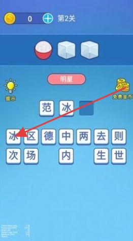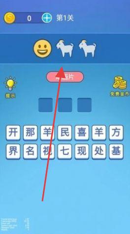 2、在关卡界面,根据上方提示(如表情、事物等),从下方文字中选取合适字,组合成答案,完成关卡。