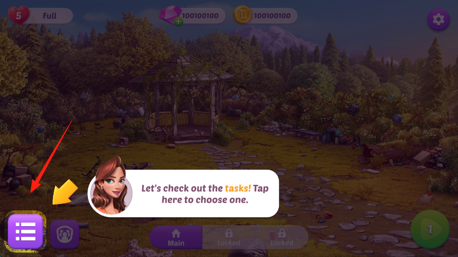 1、点击任务菜单,查看可选任务,消耗金币,选择清扫区域,开始清理。