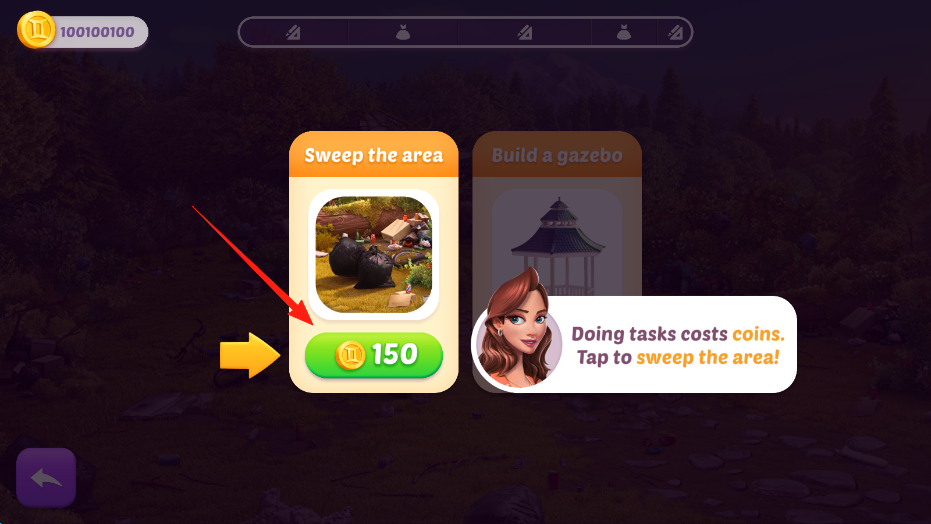2、进入任务界面,选清扫任务,花费金币,执行操作,完成区域清扫。