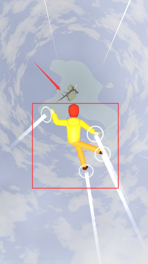 1、基础操作简单易学,左手控制方向右手调整姿势,点击屏幕即可开伞,但想要精准降落目标点则需要反复练习掌握气流规律。
