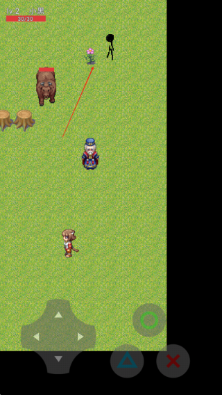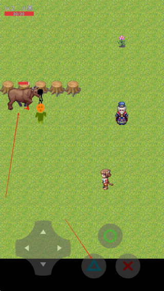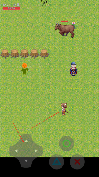 1、进入游戏后操控像素小人在地图探索,点击屏幕触发互动,遇到存档点可随时保存进度。