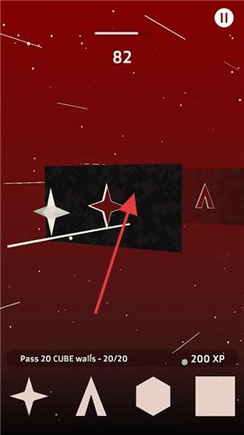 3、成功穿过所有障碍物抵达终点即可通关,收集的能量晶体可解锁六边形星形等进阶图形与特效外观。