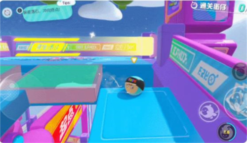 3、面对不同颜色平台、移动机关,观察规律,提前调整蛋仔行动方向,借助场景道具,顺利通过关卡。