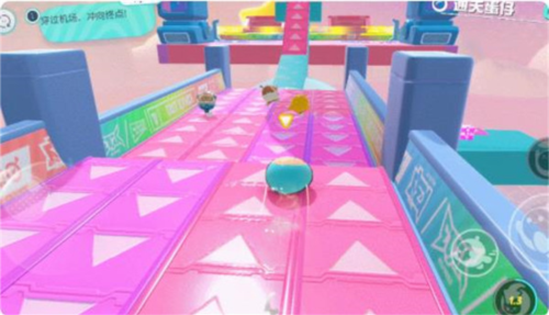 1、在彩色赛道,控制蛋仔沿路径前进,避开障碍,遇到加速带、弹簧等道具,合理利用提升速度。