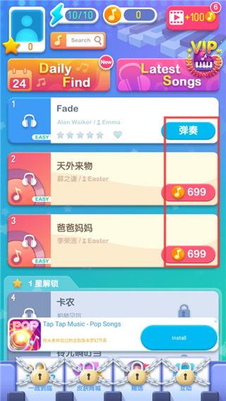 3、海量音乐持续更新:拥有众多不同风格的歌曲分类,涵盖经典与原创曲目,且保持每周更新新歌的频率,确保玩家能持续接触到最新、最潮流的音乐资源。