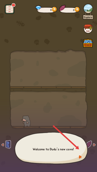 2、洞穴引导:进入“Dudu’s new cave”,点击提示按钮,开启洞穴养成。