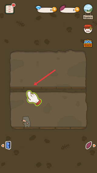 3、挖掘操作:跟随指引,点击洞穴区域,控制Dudu挖掘、开拓新空间,收集资源。