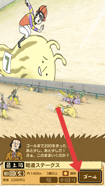 3、在蛞蝓之星的赛马游戏场景中,比赛结束后点击【ゴール】按钮,查看赛事结果及相关奖励。
