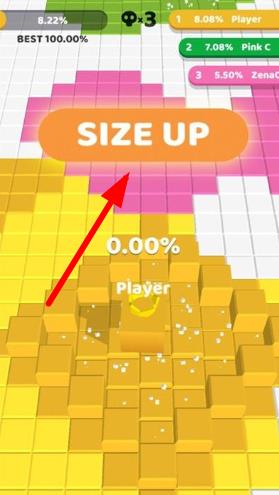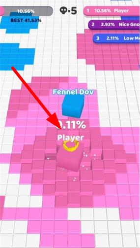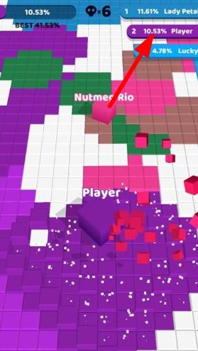 2、地盘争夺玩法:核心目标为染色占地,狭小地图中与对手博弈,几个方块的差距即可决定胜负。