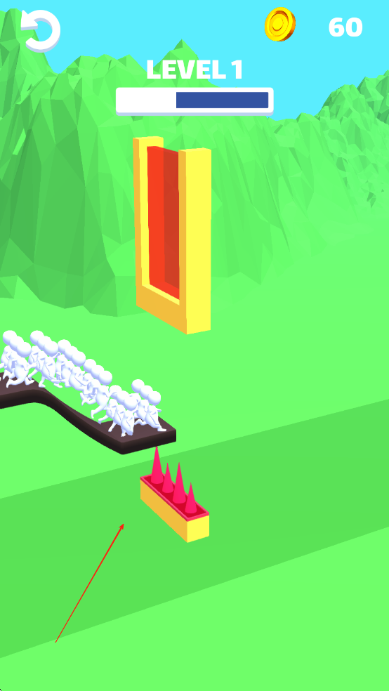 2、遇到红色陷阱路段及时躲避,收集金色能量块增加临时护盾,通过绿色增幅区实现人数倍数增长。