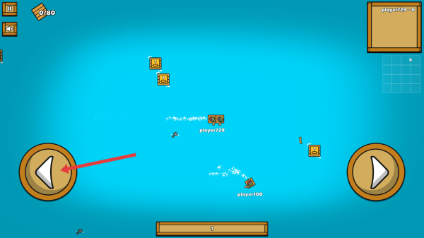 2、操控左下角按钮,驾驶木筏在海上移动,收集漂浮的木箱资源。