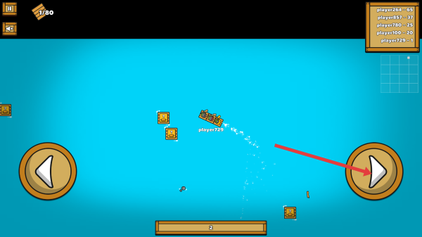 3、点击右下角按钮,调整木筏方向,躲避危险,与其他玩家(如player100)竞争物资,推进生存建造。