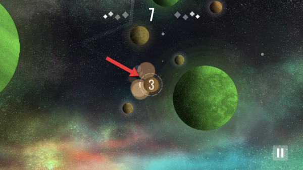 3、操控者需要瞄准标有【3】的比自己小的星球,操控自己的星球抵达该位置,推进游戏进程。