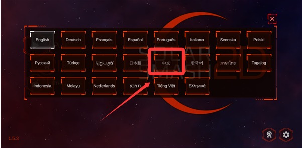 1、进入游戏点击右下角的设置选择ENGLISH选项。