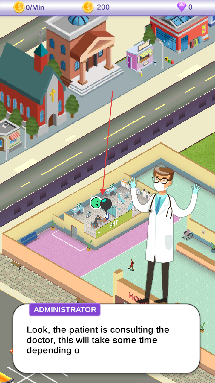2、在医院地图界面,点击科室(如ENT),让患者进入咨询医生,开启诊疗环节,为康复奠基。