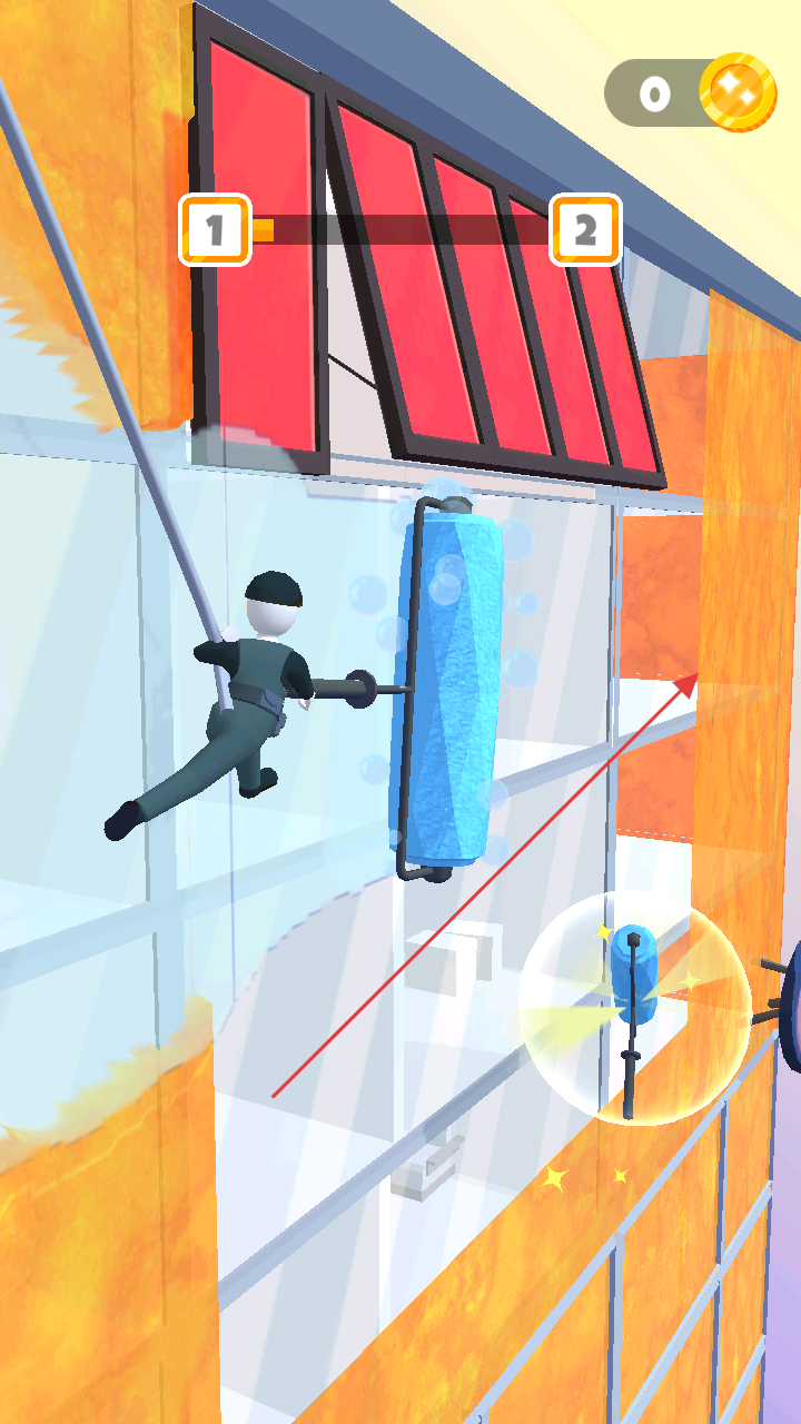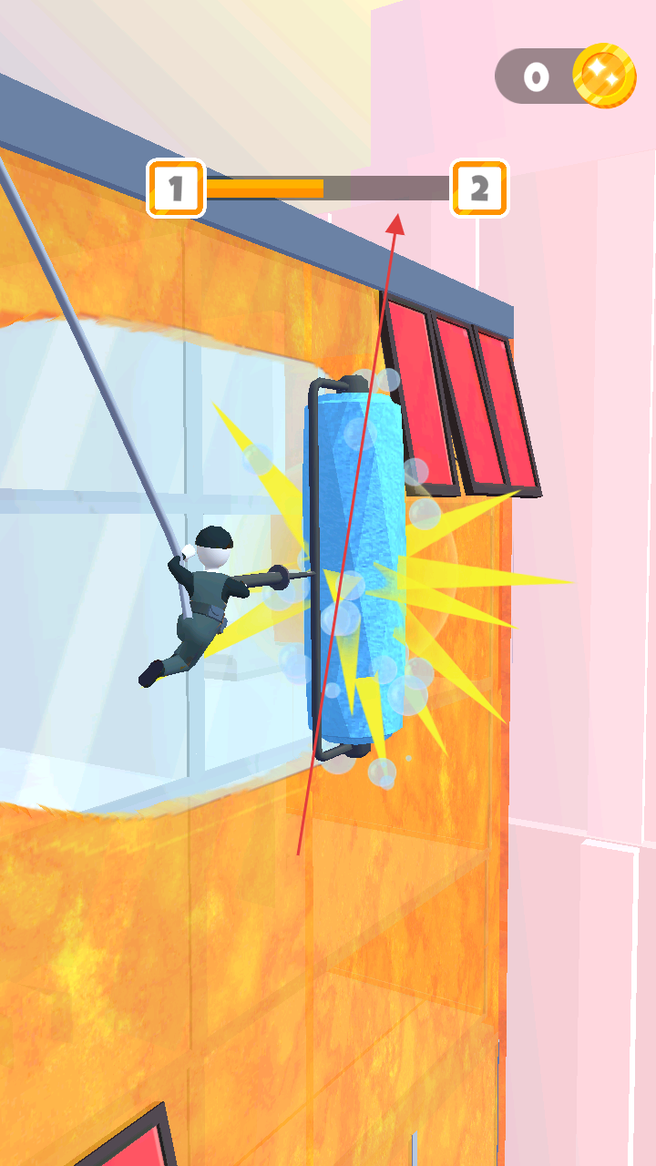 1、滑动控制清洁作业:通过滑动手指控制清洁工在大楼外墙上移动,精准定位脏污窗户进行清洁,简单的滑动操作让玩家能专注于清洁策略,合理规划移动路线提高清洁效率。