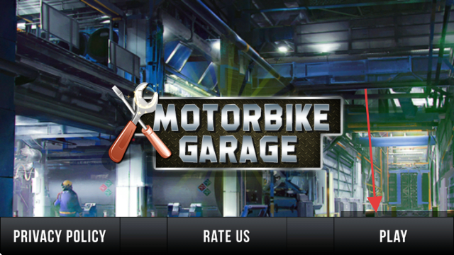 1、点击界面右下角【PLAY】,进入【OTORBIKE GARAGE】游戏。