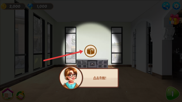 3、家装升级:在房间界面,消耗金币、钻石等资源,点击“点击升级”按钮,对家具、装饰进行升级,打造个性化家居,推进家装设计进程。