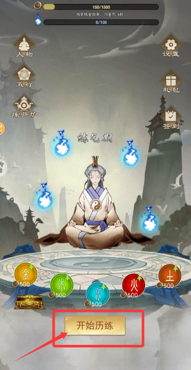 1、进入游戏后点击历练按钮,即刻开启一段充满未知与机遇的修真冒险旅程。