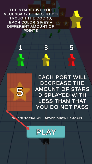 2、规则了解:通过教程界面,知晓星星是开门关键(不同颜色门对应分数需求),点击“PLAY”开始正式挑战。