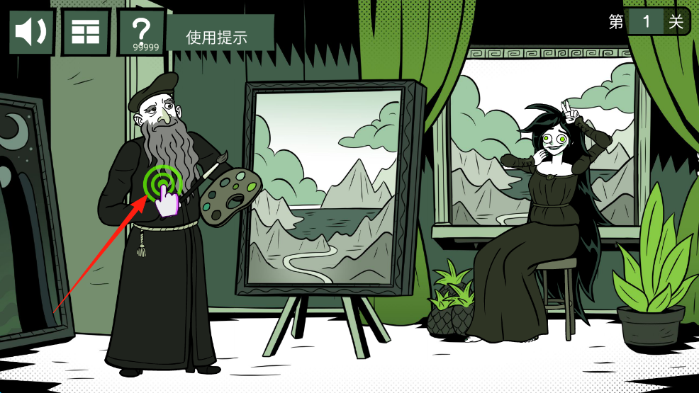 1、点击开始,进入关卡,观察场景,点击互动元素,解开谜题推进。