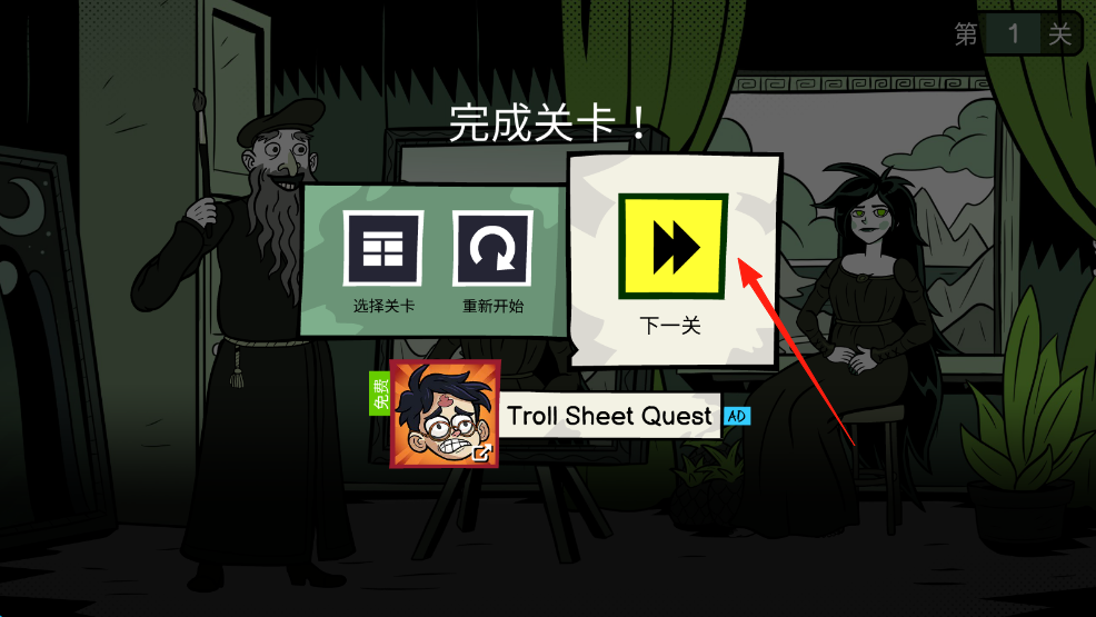 3、通关后,选下一关,继续挑战,或选其他关卡,体验不同解谜内容。