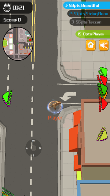 1、核心IO竞技玩法乐趣十足,在地图中收集散布的资源快速成长,通过精准操作击败其他玩家,最终成为存活到最后的胜者。