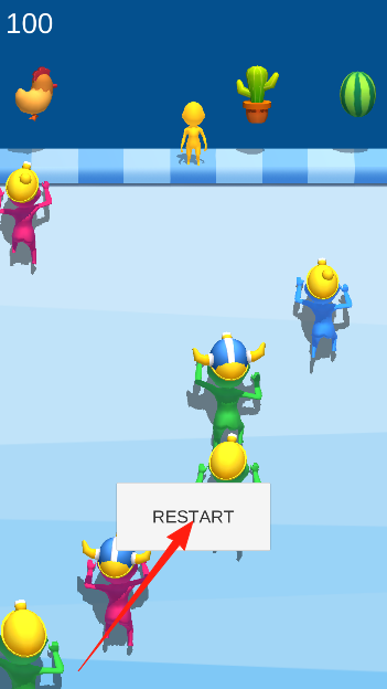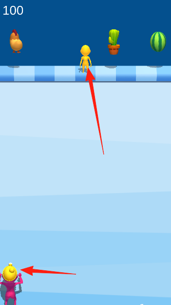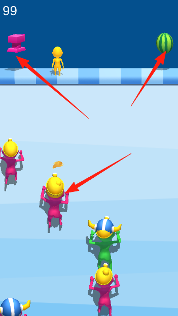 2、躲避突然出现的障碍物,调整圆柱体滚动方向,在倒计时结束前推倒更多小人。