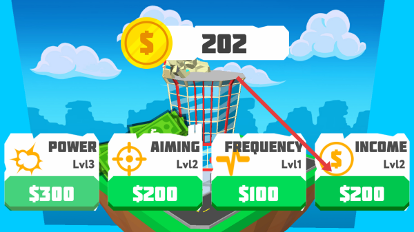1、消耗金币(如100),升级【POWER】属性(Lv1→Lv2),提升破坏建筑的伤害,加快通关进度。