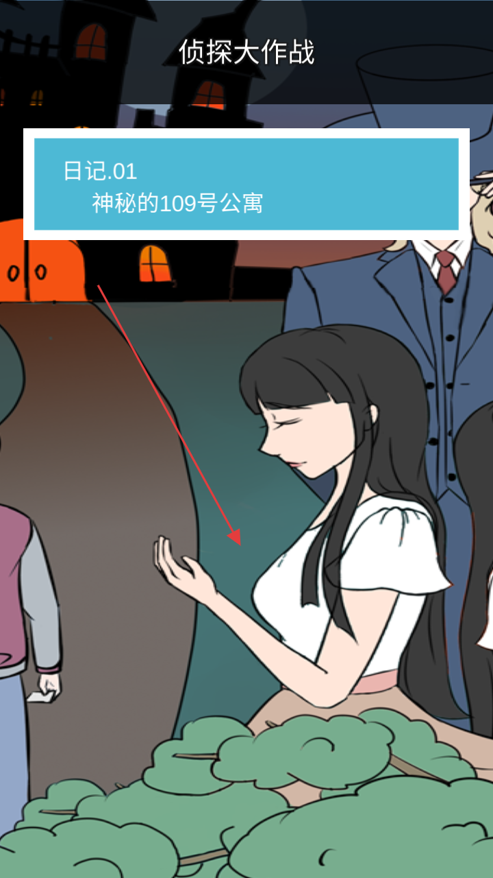1、进入“日记.01神秘的109号公寓”关卡,观察场景人物、环境,收集线索(如人物动作、房间物品)。
