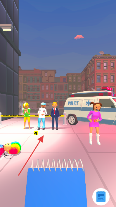 2、在案发现场,操控角色靠近标有数字的线索,收集证物推进调查。