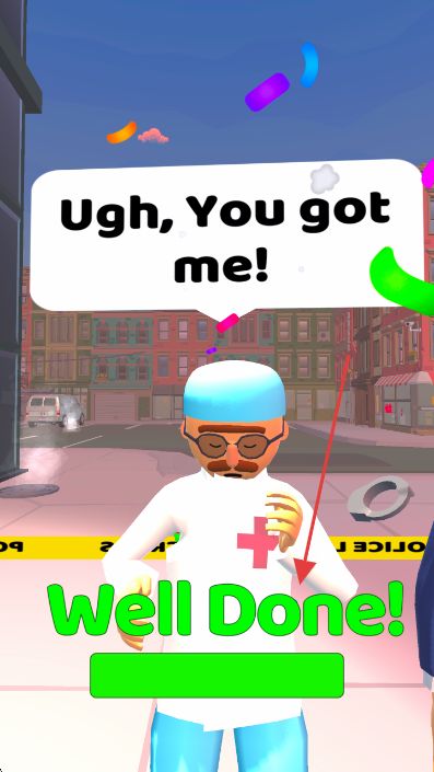 3、成功抓捕目标后,点击绿色按钮,完成关卡并解锁后续内容。