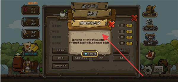 2、游戏设置界面,弹出“销售所有符文”提示,可选择钻石出售符文,涉及符文管理玩法。
