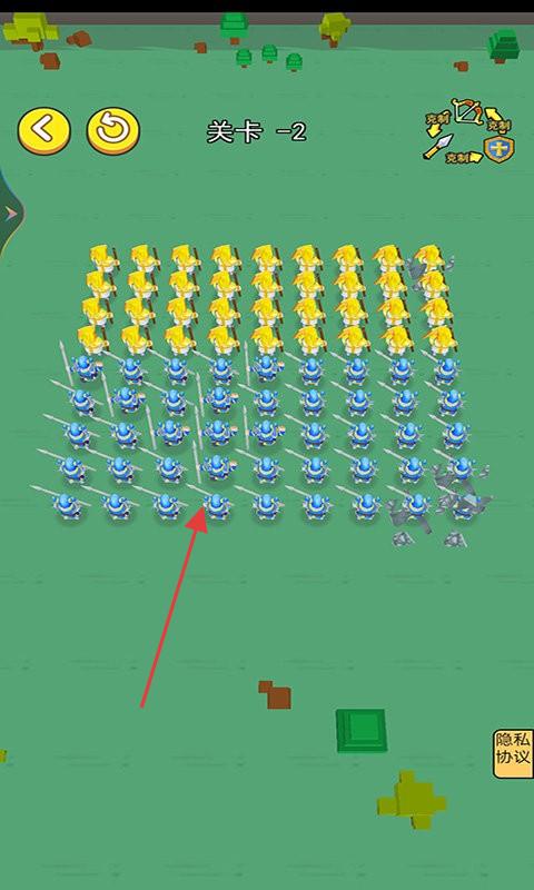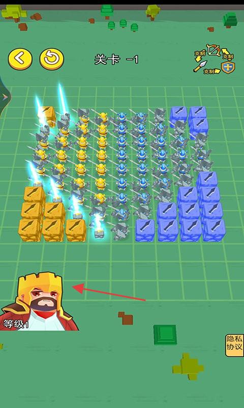 1、在关卡开局,将不同兵种排列在网格战场,规划站位,构建攻防阵型,为战斗做准备。