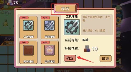 3、将挖矿得到的收益,可以去商店升级工具。