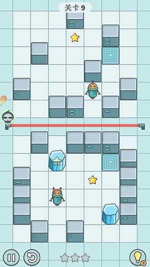 1、操作指南:控制机器人移动,收集星星并利用传送点,注意避开红色激光。