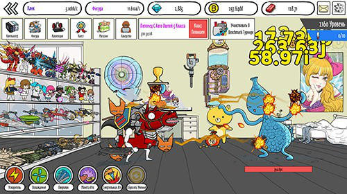 1、攻击怪物:通过点击进行攻击,对怪物造成伤害,注意观察画面上显示的伤害数值(如【1.05】)。