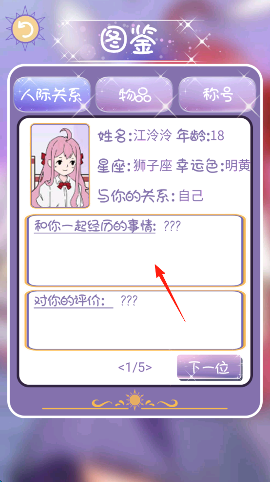 3、进入图鉴,查看人物信息,通过故事互动,解锁经历与评价内容。