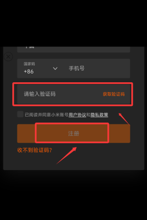 3、然后获取验证码,填写验证码,点击注册即可。