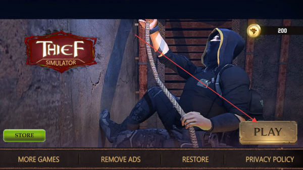 1、进入游戏界面后,点击“PLAY”按钮开启游戏,这是进入盗窃冒险的关键操作,开启任务之旅。