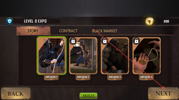 2、在任务选择界面,选定“MISSION1”等任务,点击“NEXT”进入场景,按指引探索房屋周边。