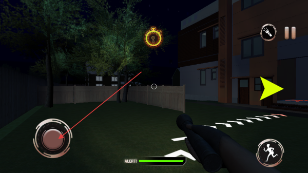 3、利用移动摇杆控制角色行动,借助手电筒等道具,避开警报,完成盗窃任务,积累金币升级。